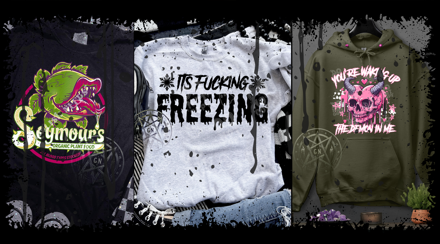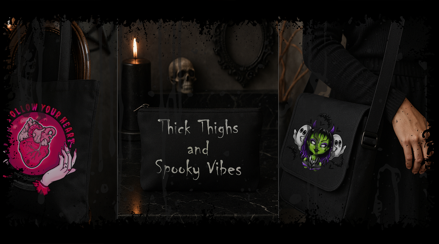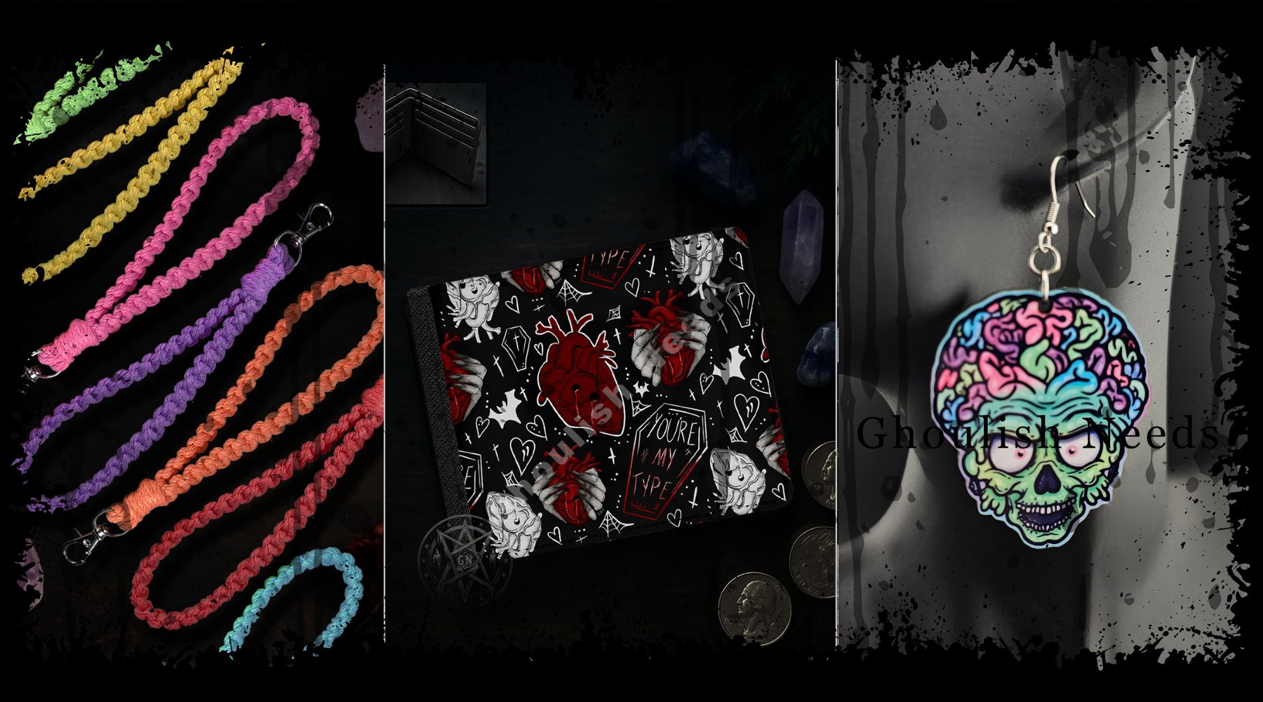 I’m Britta, owner of Ghoulish Needs. Every piece is handmade (or machine-assisted), so no two are ever the same. Some items take 1–3 weeks, but they’re worth the wait. 🦇 Join the Cult (our mailing list) for updates, exclusive discounts and more. Free shipping on all orders $50+, which helps me keep prices lower while rewarding bigger orders. You’ll also find more discounts when buying certain items, so make sure to look around. 👻