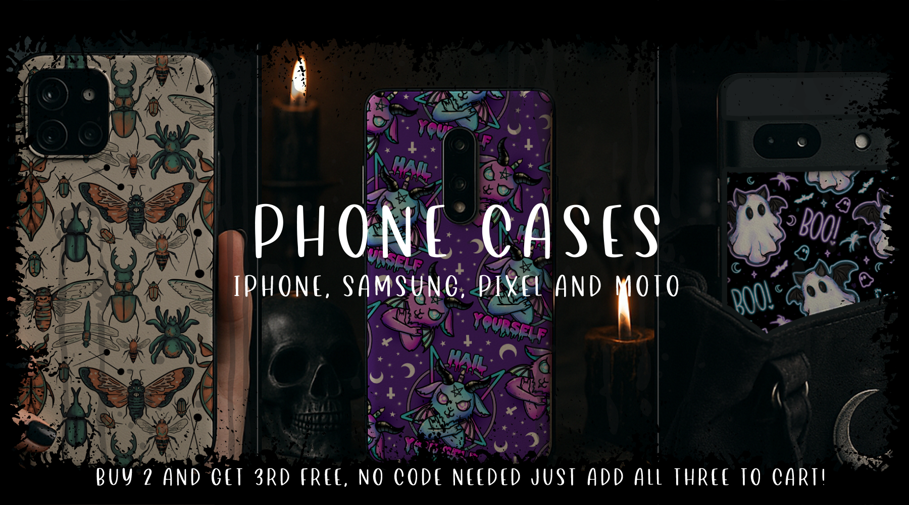 I’m Britta, owner of Ghoulish Needs. Every piece is handmade (or machine-assisted), so no two are ever the same. Some items take 1–3 weeks, but they’re worth the wait. 🦇 Join the Cult (our mailing list) for updates, exclusive discounts and more. Free shipping on all orders $50+, which helps me keep prices lower while rewarding bigger orders. You’ll also find more discounts when buying certain items, so make sure to look around. 👻