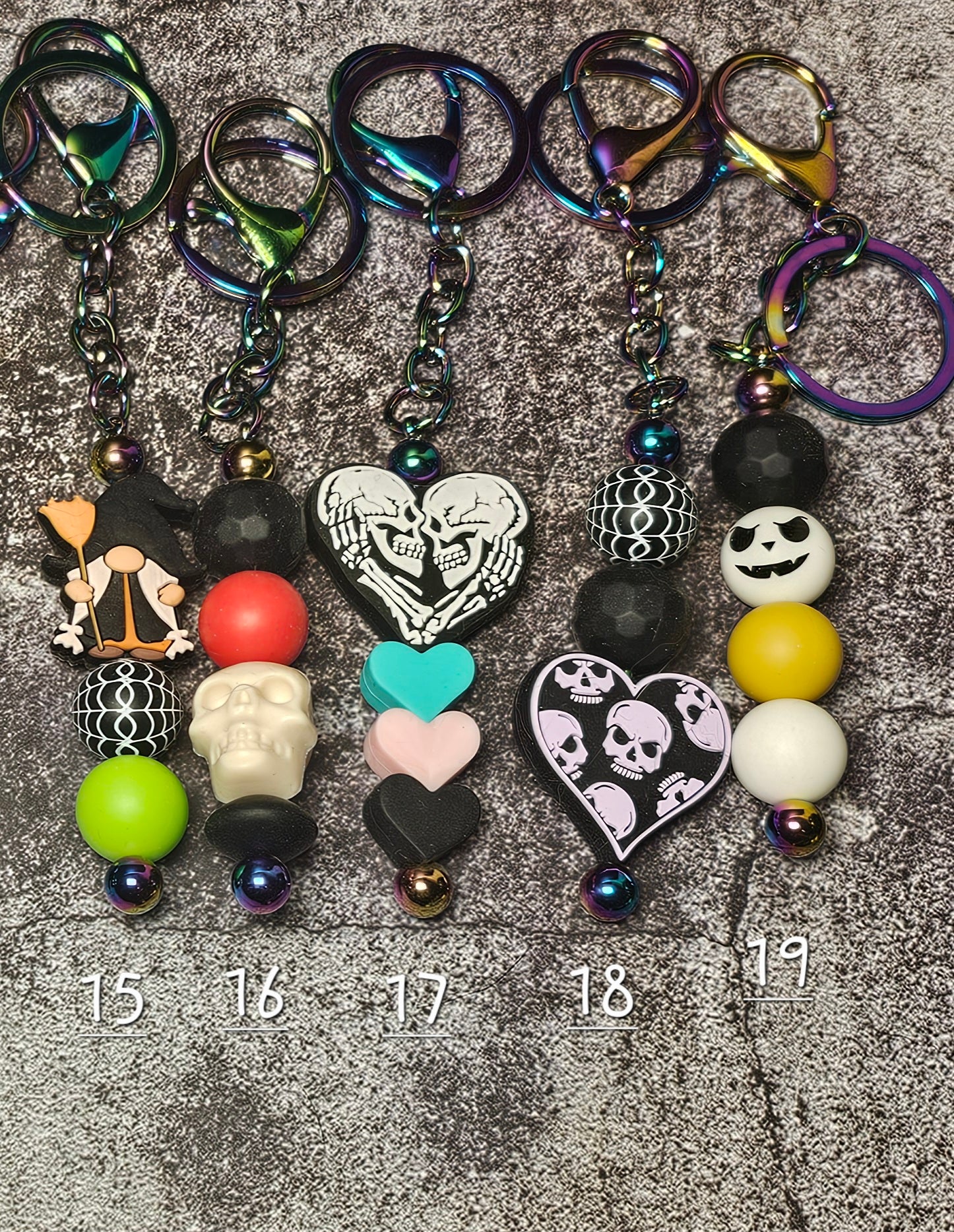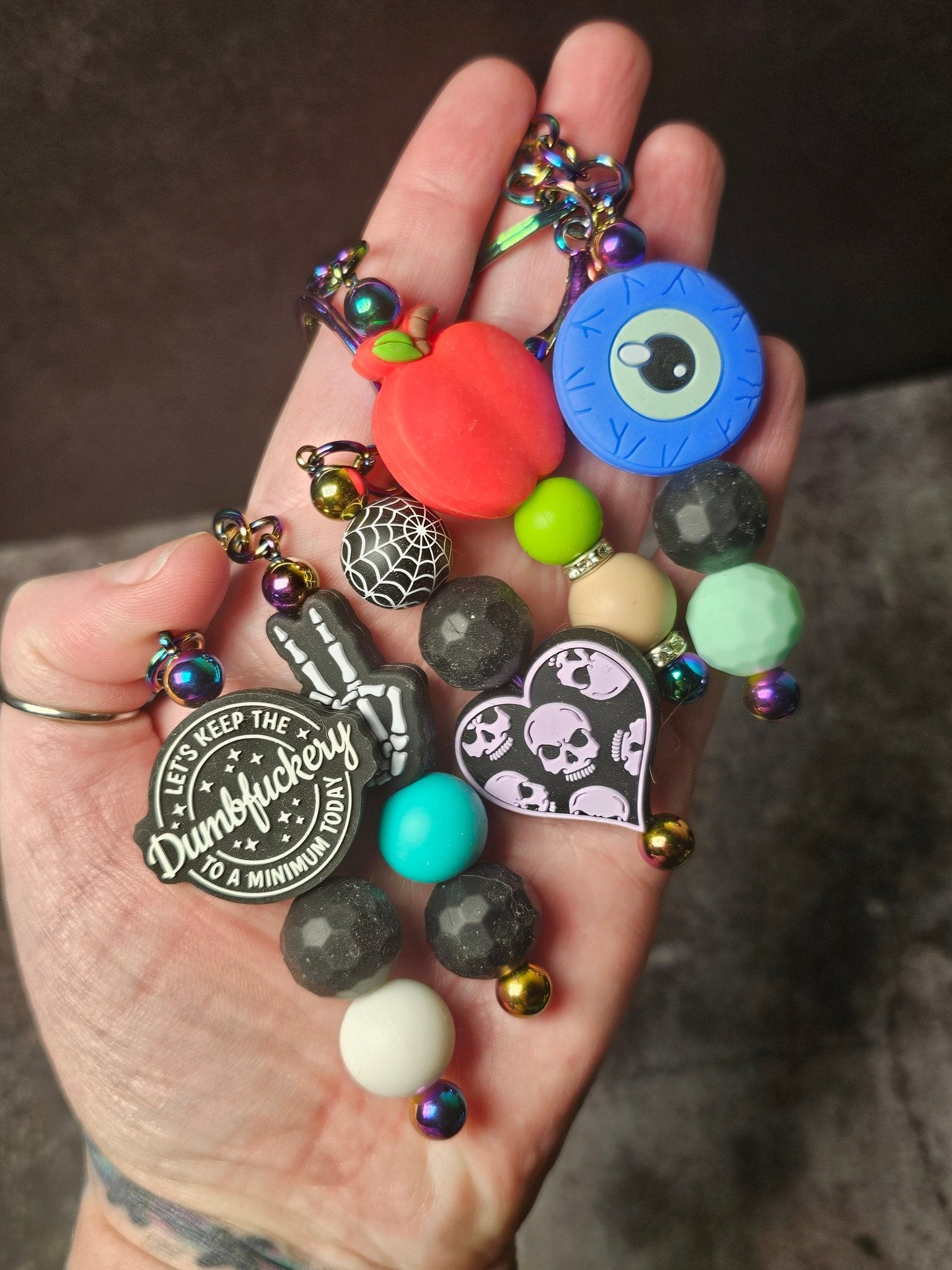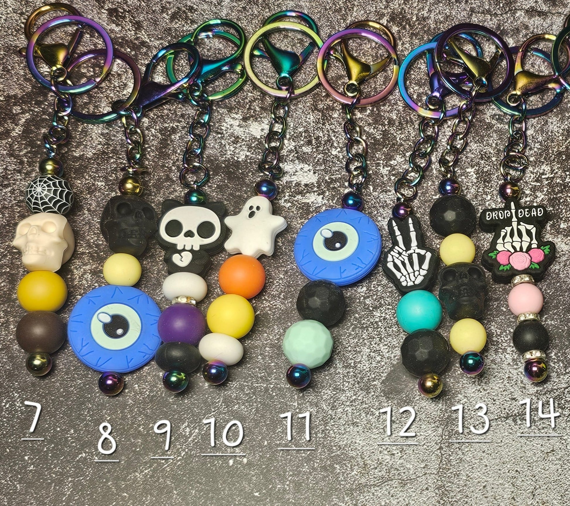 Add a touch of spooky charm to your everyday carry with our silicone beaded keychains! Featuring eerie yet stylish beads on an eye-catching oil spill metal ring, these keychains are perfect for adding personality to your keys, bags, or lanyards. Durable, lightweight, and uniquely designed, they’re a must-have for anyone who loves spooky aesthetics with a pop of color!