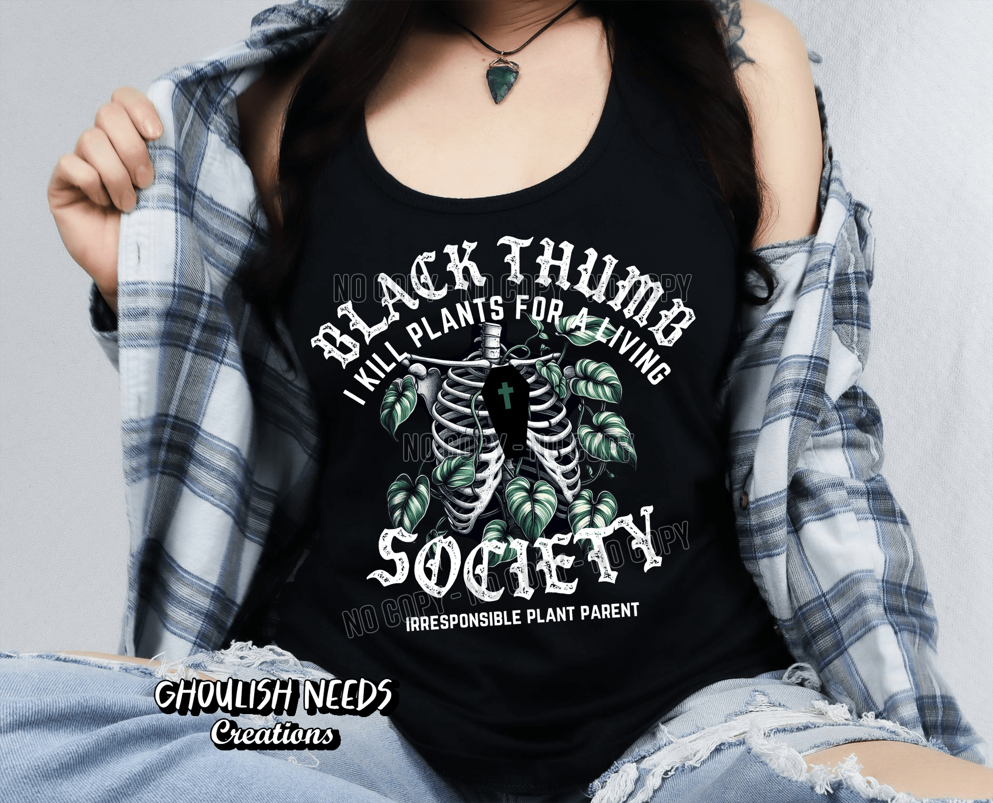 Grow your wardrobe with our Black Thumb tank top! Made from durable material, this top may not give you a green thumb, but it will last you for seasons to come. Perfect for gardeners of all levels!
