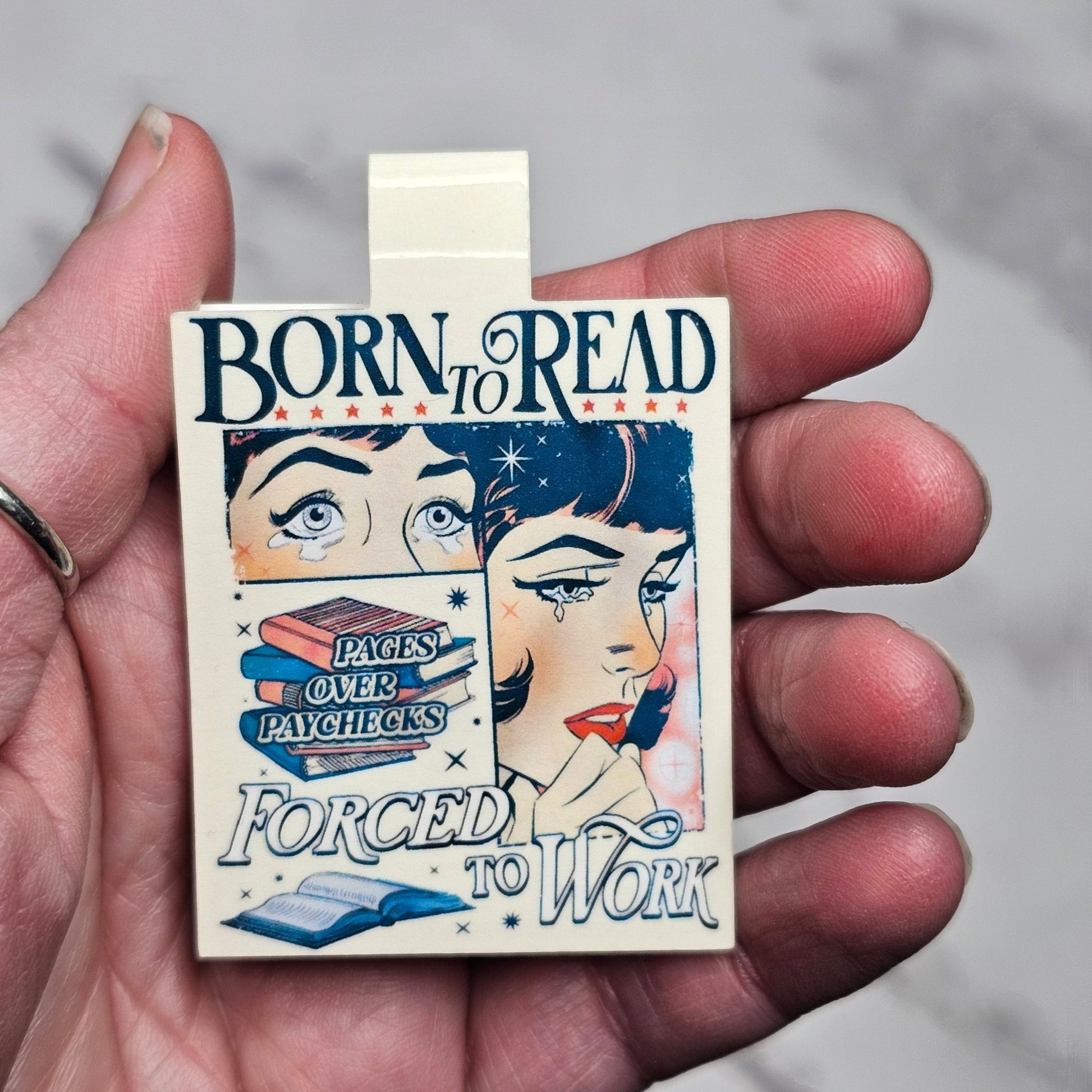 Stay motivated with this clear magnetic bookmark! Featuring the witty phrase "Born to Read, Made to Work" in neutral tones, it’s perfect for book lovers balancing work and passion. Double-sided design, 1.75 inches wide, and a strong magnetic grip to keep your page safe without damage. A must-have for any reader!