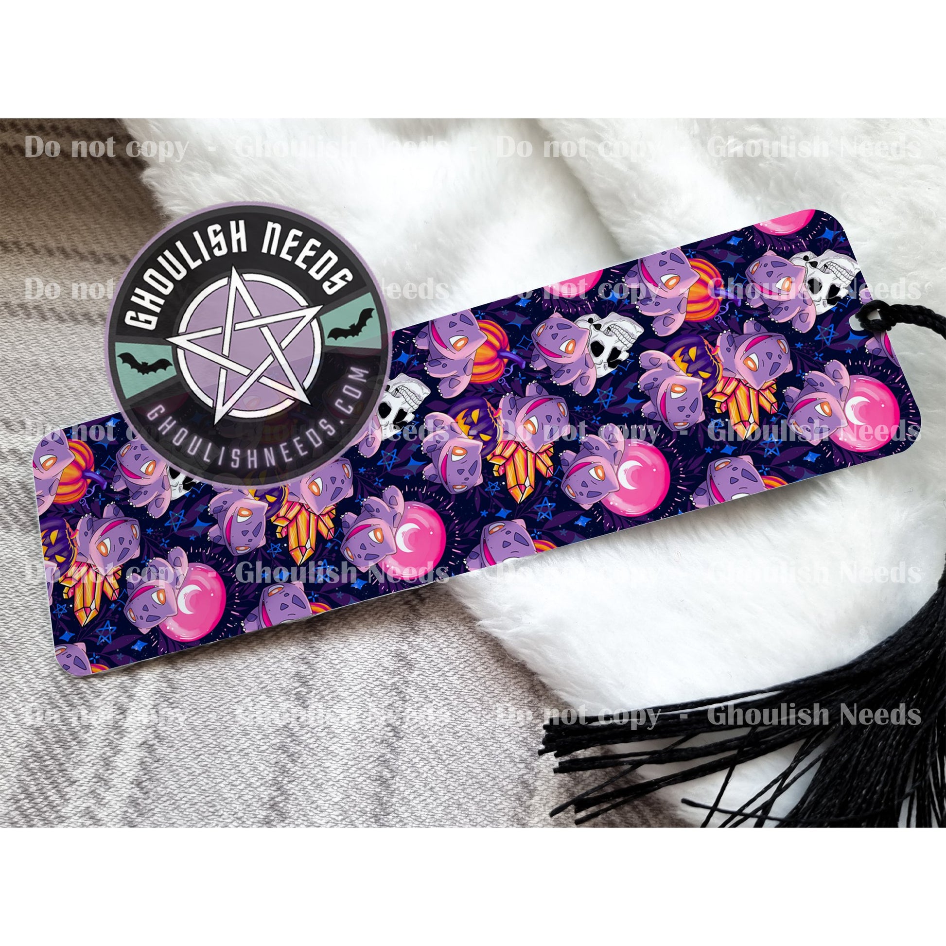 This Halloween bookmark is the perfect decorative addition to any book. Cute Bulba markings adorn the metal backing, and a tassel adds a stylish finishing touch. Get spooky and stylish with this one-of-a-kind bookmark!