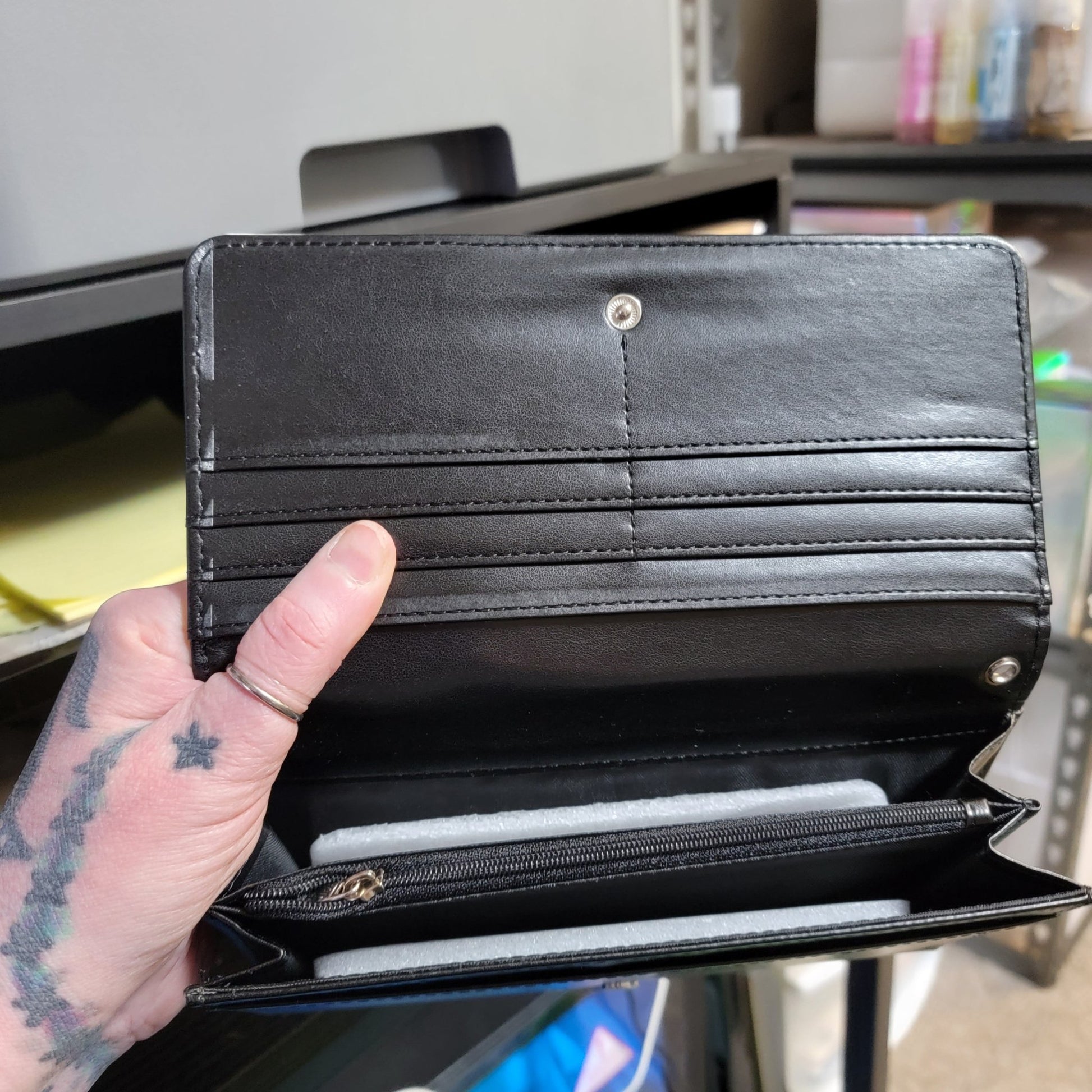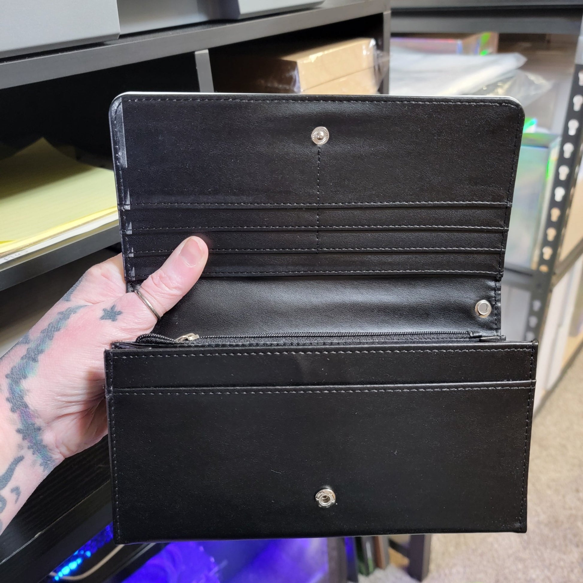 This handmade wristlet wallet is perfect for any fan of the classic card game. With its eye-catching Halloween-inspired design featuring a cute purple creature, it offers plenty of room to store all your essentials.