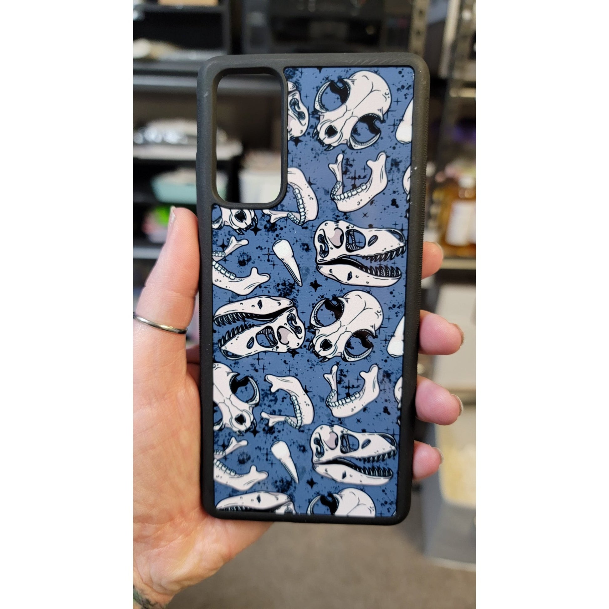 This handmade Dino Bones Phone Case is perfect for the dinosaur enthusiast. It's made of durable material and designed to provide lasting protection against everyday wear and tear.