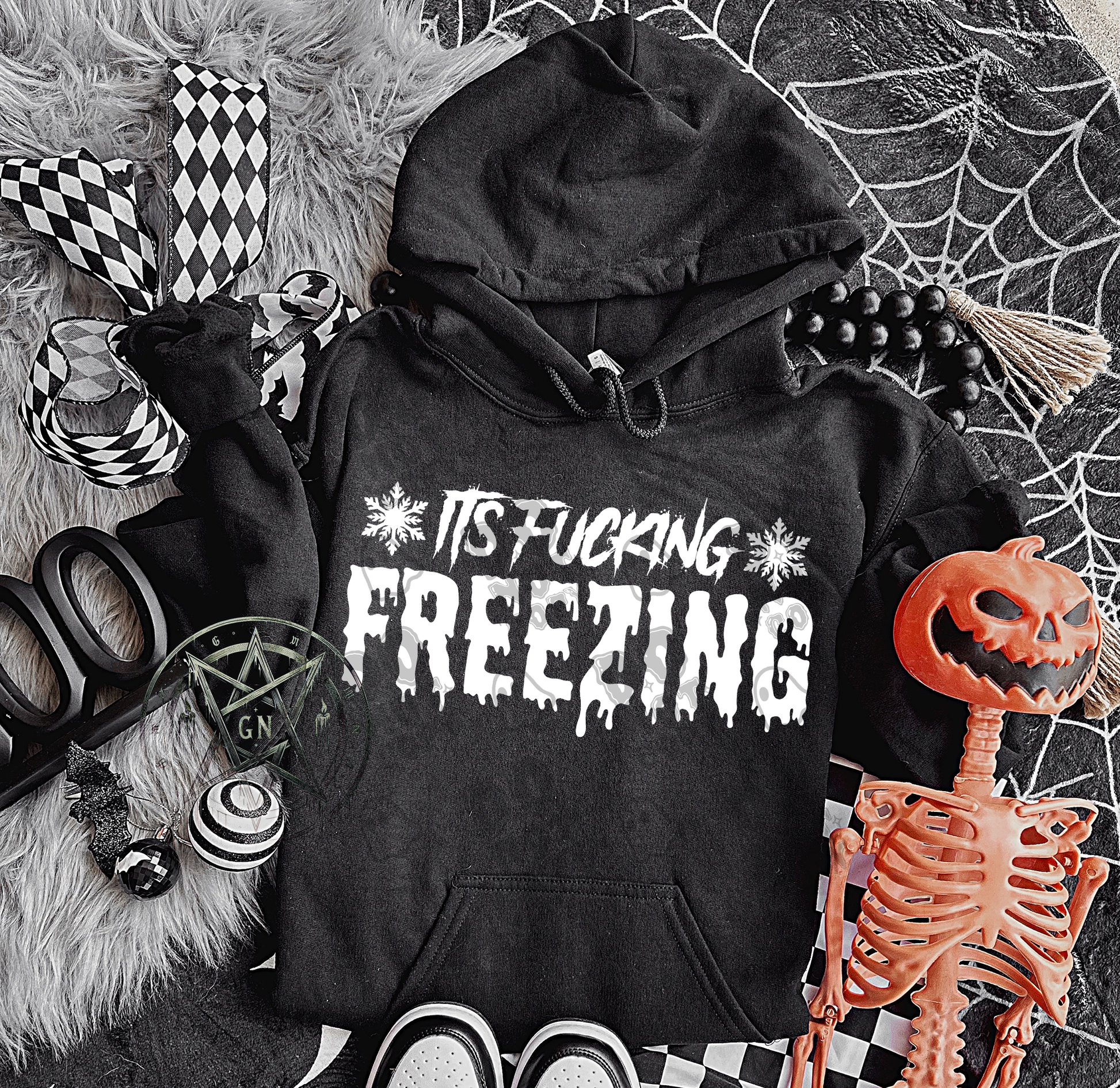 Stay warm and make a statement with our Fucking Freezing Pullover Hoodie. Handmade with durable material, this hoodie is perfect for the cold seasons. Plus, it adds a touch of adult humor to your wardrobe. Stay cozy and cool with this unique and playful hoodie.