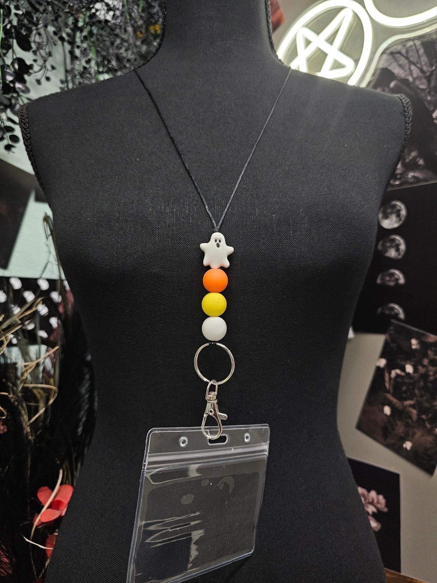 Ghostly Candy Corn Beaded Lanyard - 19 inches long
