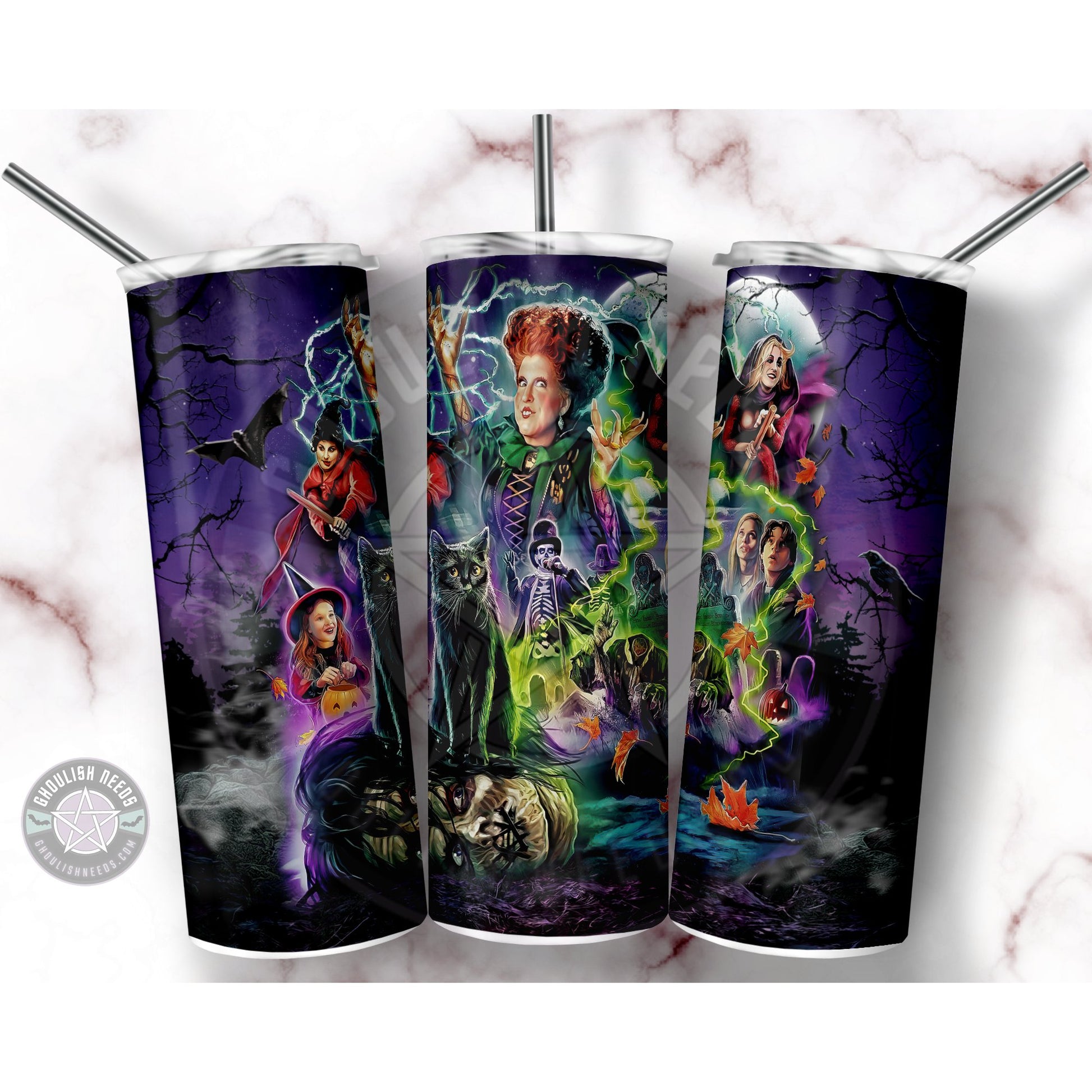 Sip in style with this HP-themed Halloween tumbler! Crafted with double-insulated stainless steel, this 20oz tumbler features a fun, Hocus Pocus-inspired design of the classic Sanderson Sisters. Perfect for keeping your drinks hot and cold for hours!