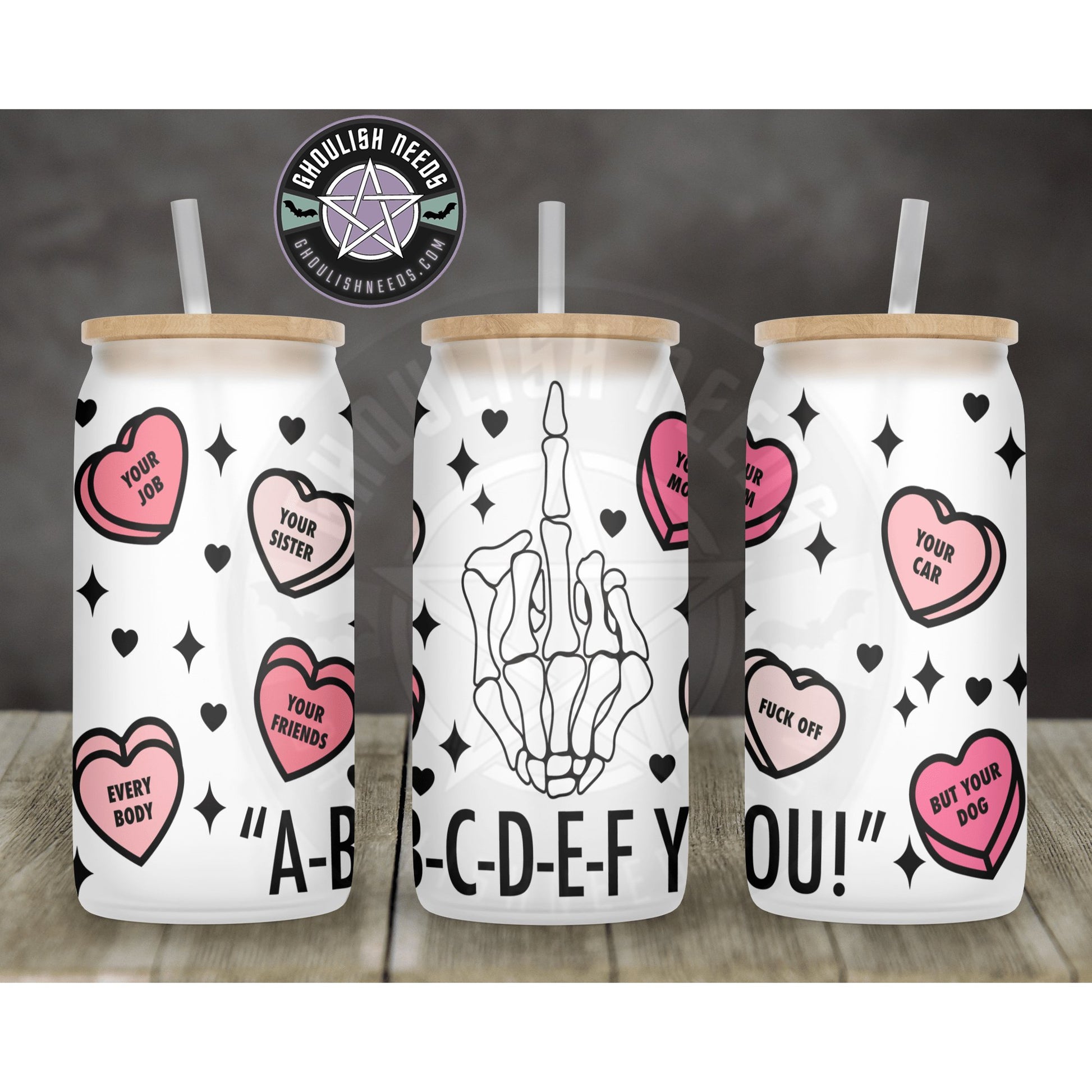 Enjoy your favorite drinks in style with this ABCDEF U 16oz Frosted Libbey Glass beer can. Enjoy the convenience of its bamboo lid and reusable straw while listening to the popular song it was inspired by. Perfect for all your refreshment needs!