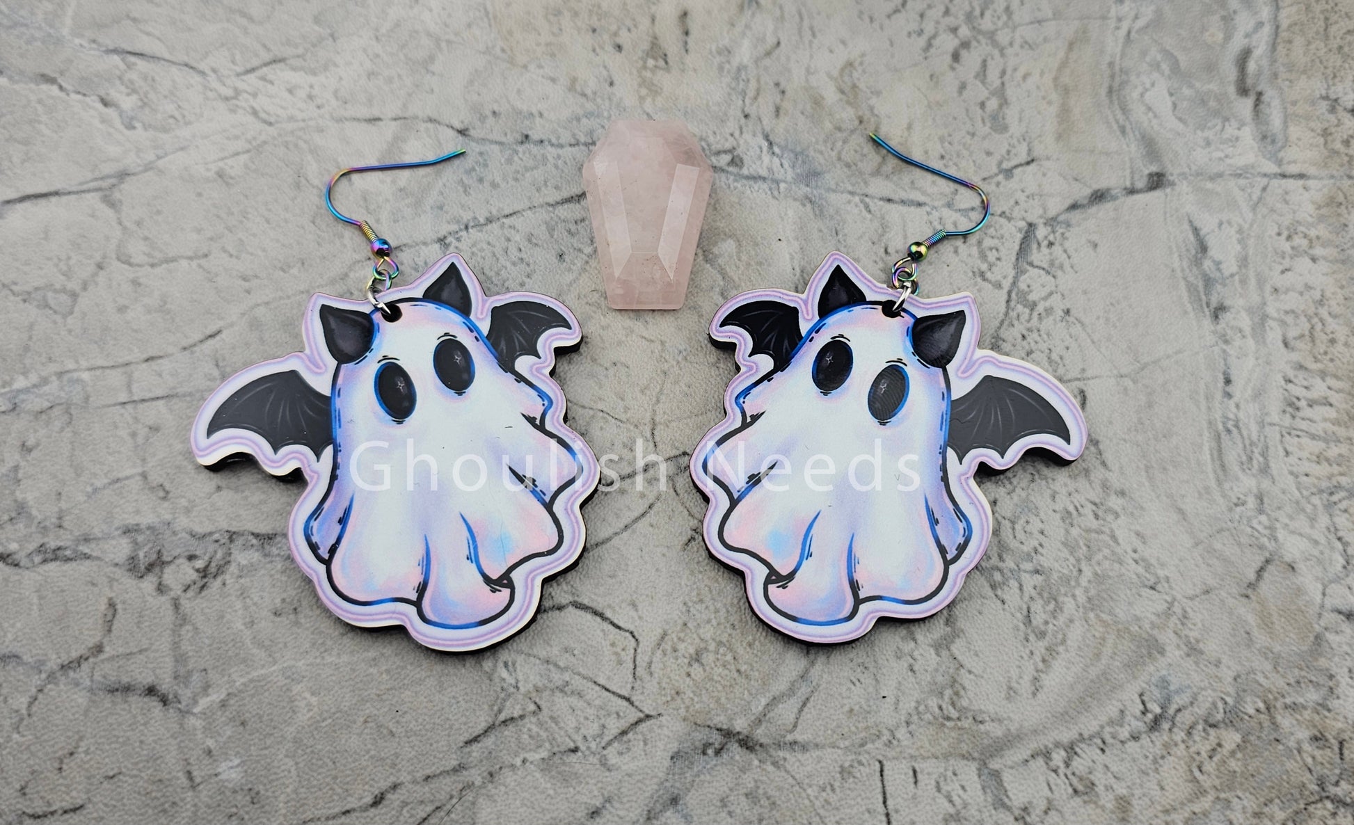 Get the best of both worlds with our Imposter Earrings! These handmade beauties feature ghostly designs and a pop of pastel goth, perfect for adding some spook to your style. Made from high-quality wood and rainbow metal, these earrings are anything but ordinary. No one will ever know you're not a true fashion expert! (Boo-tifully deceptive!)