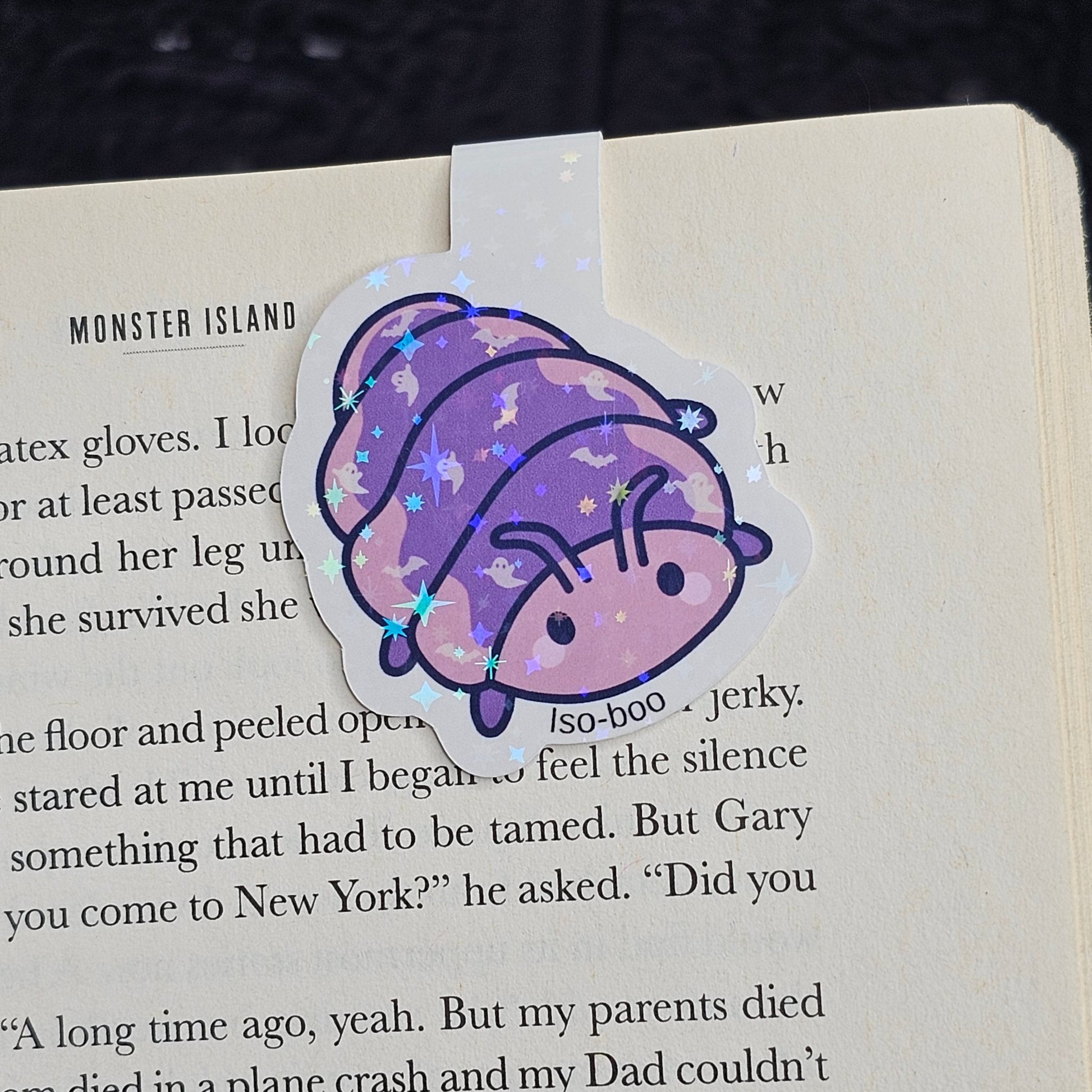 Meet Iso-Boo, the adorable and spooky isopod bookmark that's here to keep your spot in style! Handmade with care, this holographic cutie adds a touch of charm and shine to your reading routine.