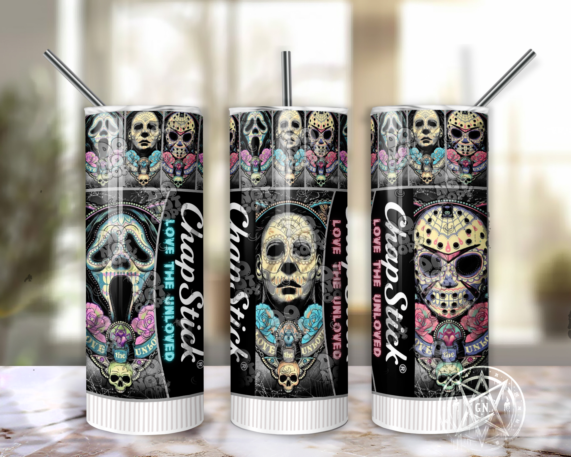 This 20oz tumbler is a unique addition to your horror movie collection. Double insulated and handmade, it will keep your drinks hot or cold for hours.