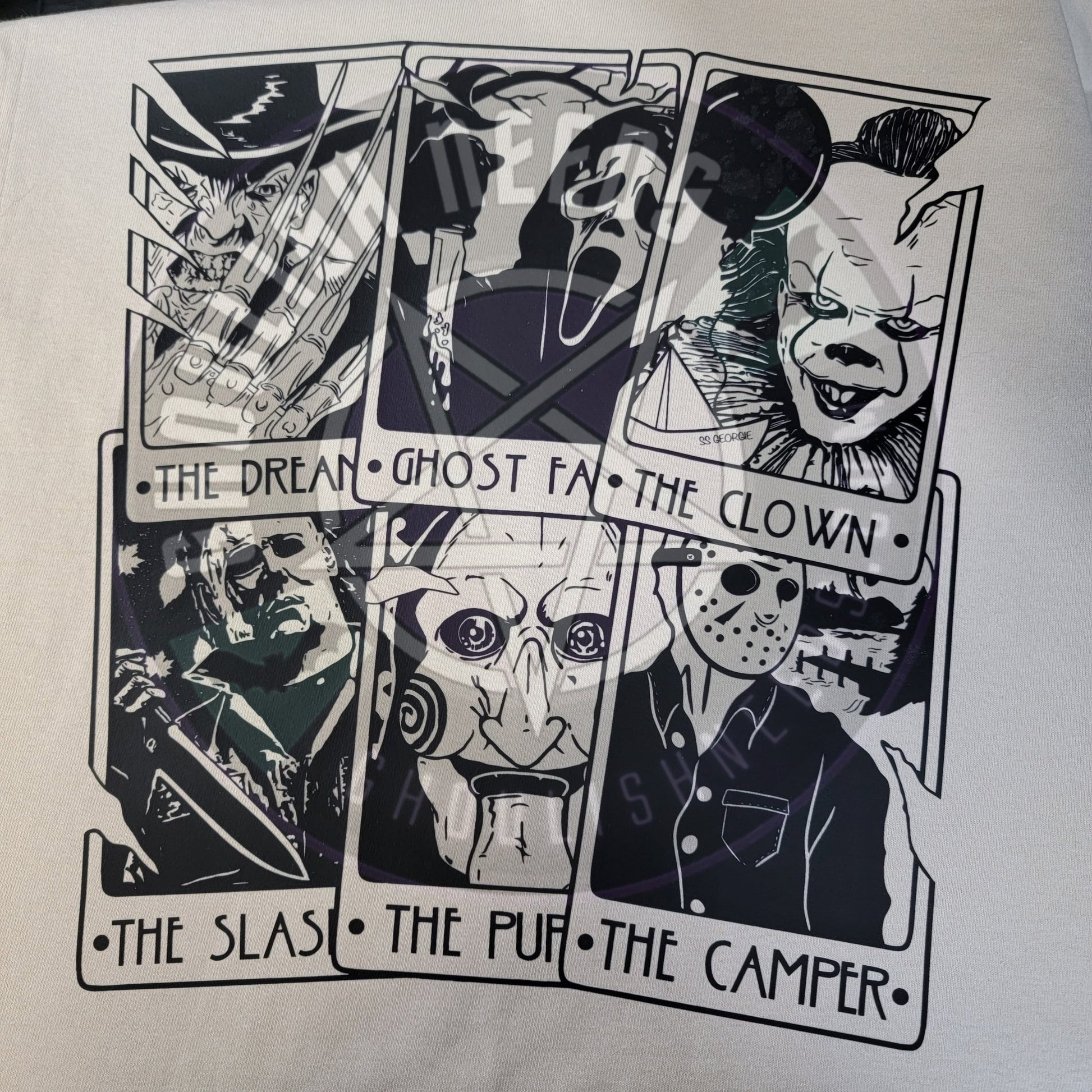This Killer Tarot Cards Unisex T-shirt is a great way to express your love for horror. Featuring your favorite horror movie killers, this t-shirt is available in sizes S-5X to accommodate everyone. Show off your style and be comfortable at the same time.