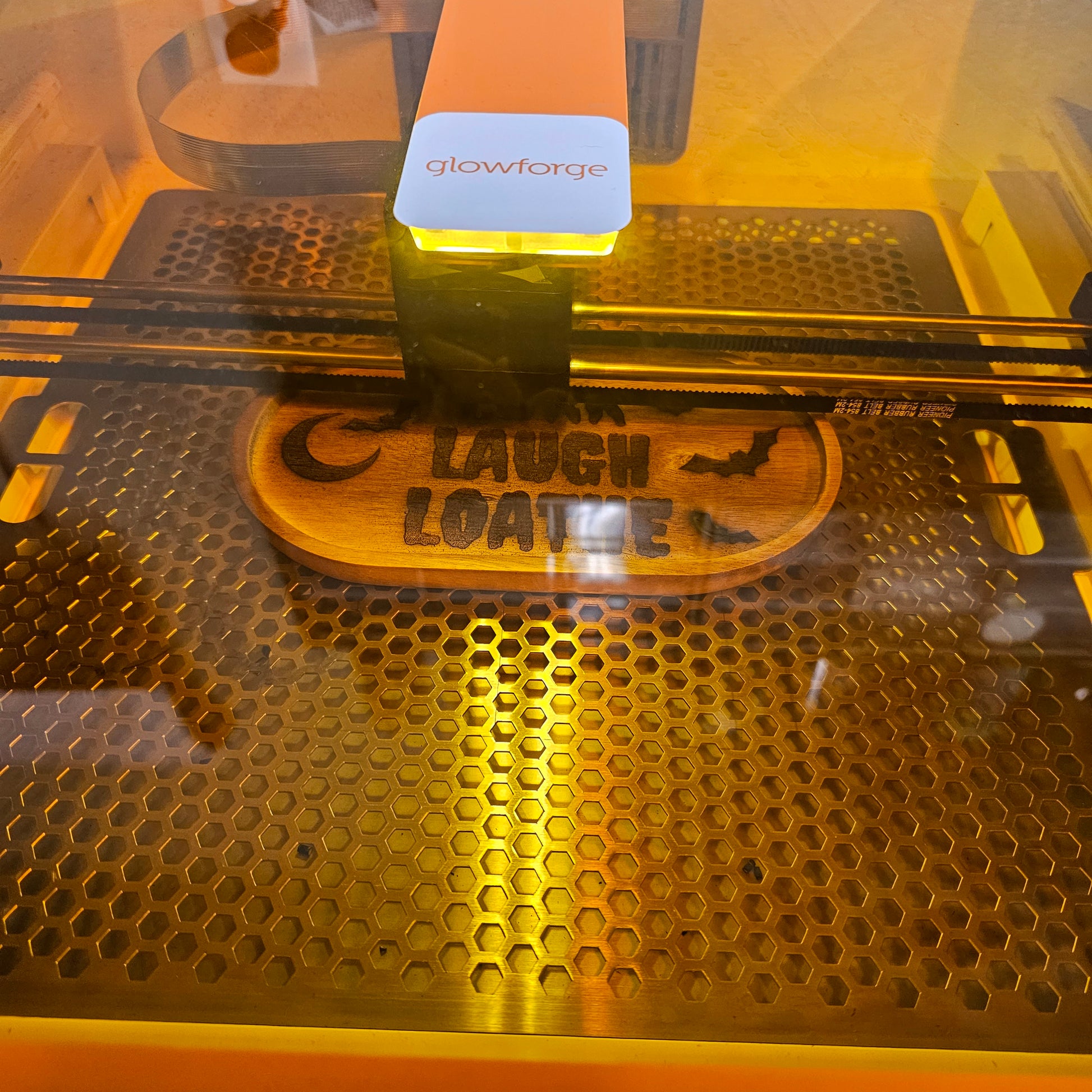 Elevate your decor with our Lurk Laugh Loathe Wood Trinket Dish! Made of real wood, each dish is laser engraved and hand painted with acrylic to add a personal touch. Perfect for your bedside, dresser, or anywhere you desire. Add style and function to any space with this unique and charming trinket dish.