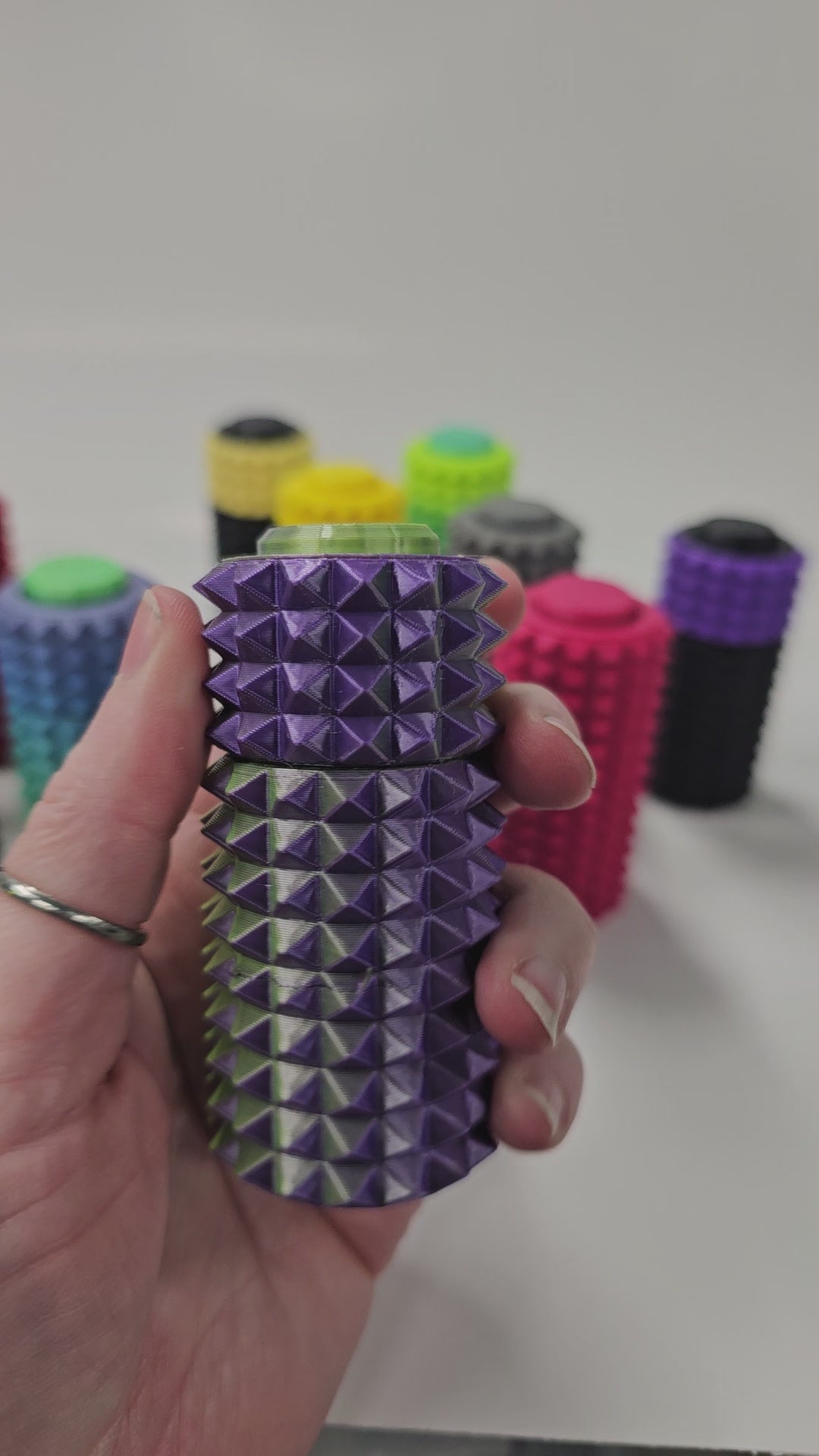 Not just a fidget—this one’s personal. The Pain Fidget is a textured hand roller designed to calm restless hands, soothe anxious thoughts, and ease sensory overload. You can roll it in your palms, spin the top half, or click the cap for repetitive motion relief.