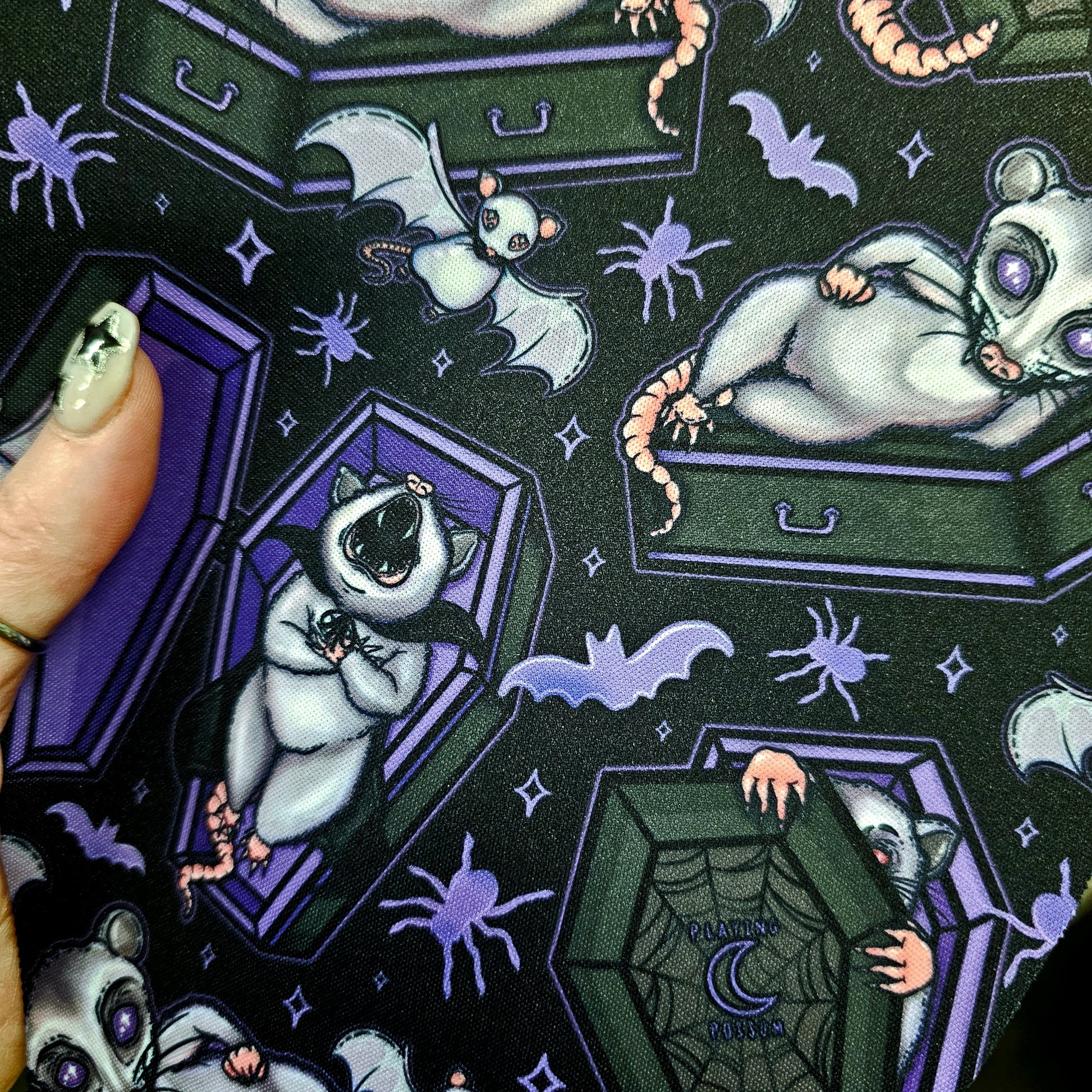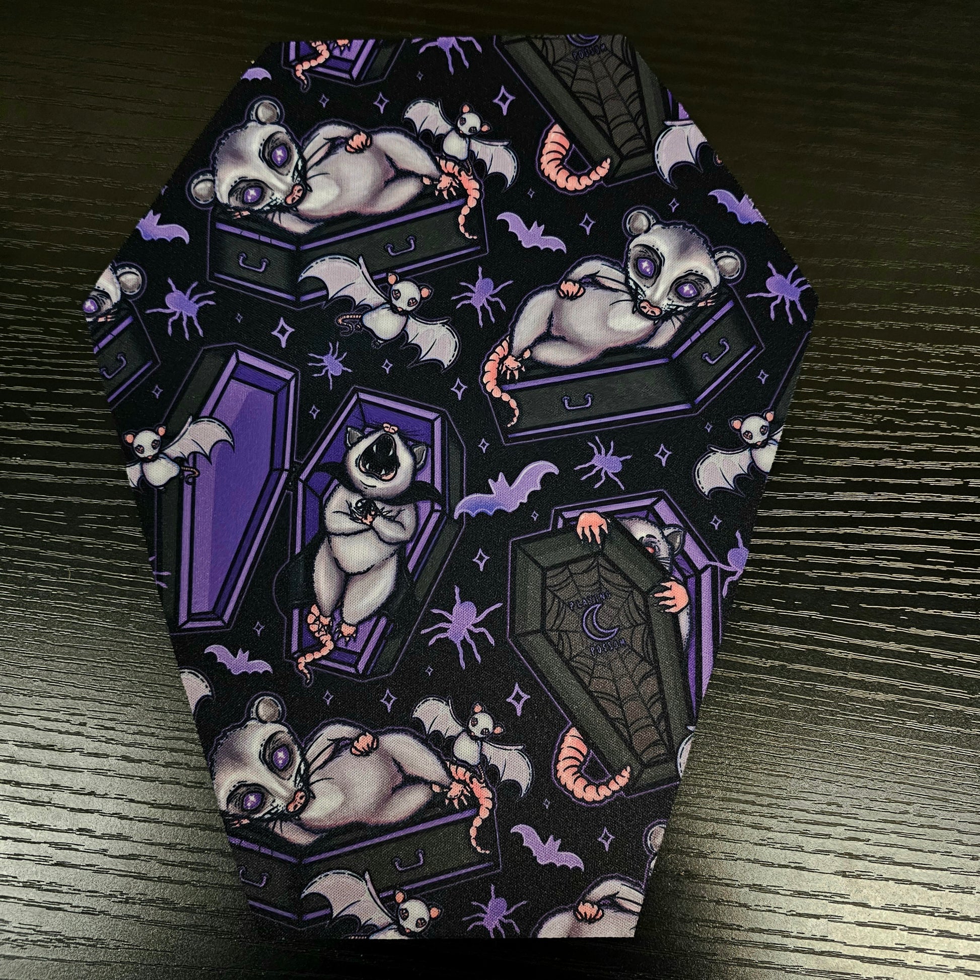 Bring a touch of cute gothic style to your workspace with our handmade Purple Possum in Coffin mousepad! The vibrant Purple color and unique design will elevate your desk while providing a comfortable surface for your mouse. Give your workspace a playful edge with this one-of-a-kind mousepad.
