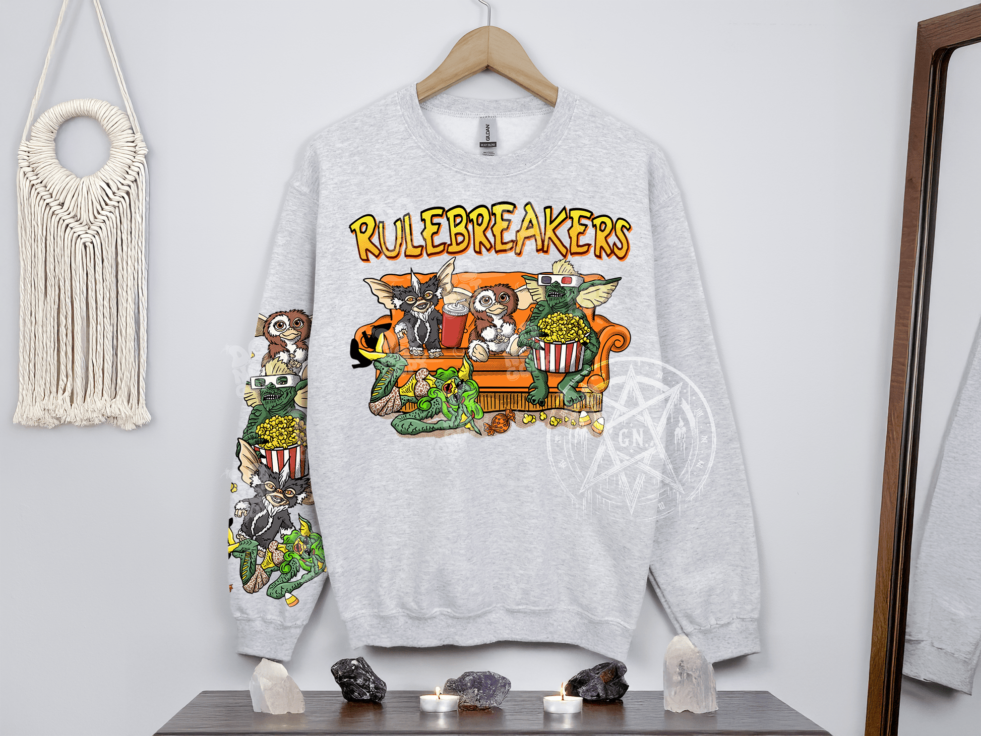 Stay cozy and stylish with our Rulebreakers sweatshirt inspired by your favorite 80s movie. Made with durable material, this sweatshirt is perfect for any adventure. Just remember: never give them food after midnight, never get them wet, and keep out of the sunlight.