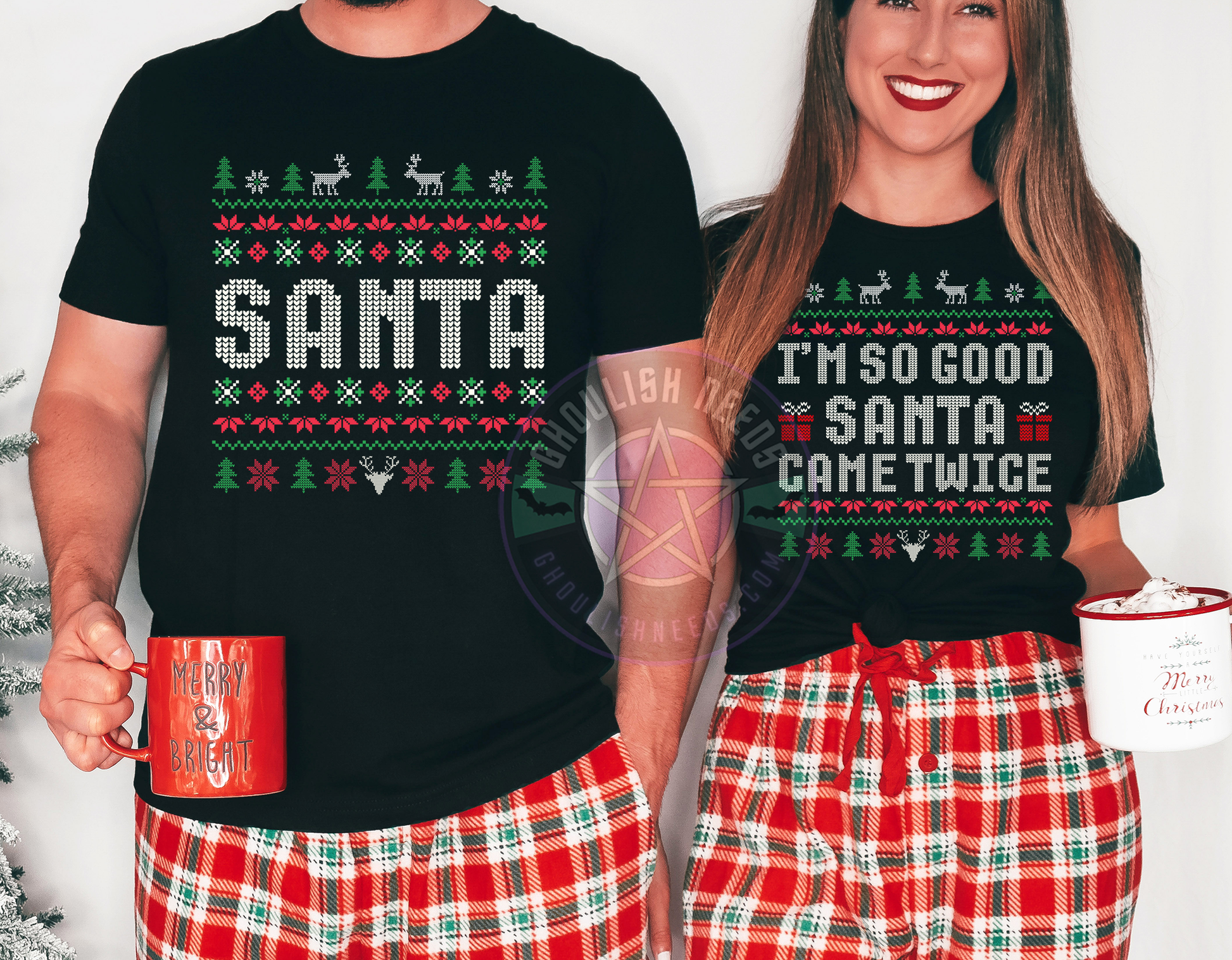 These So Good Santa Came Twice Couple T-shirts are the perfect Christmas gift for couples. Handmade and available in sizes S-5X, these funny T-shirts will have everyone laughing during the holiday season.