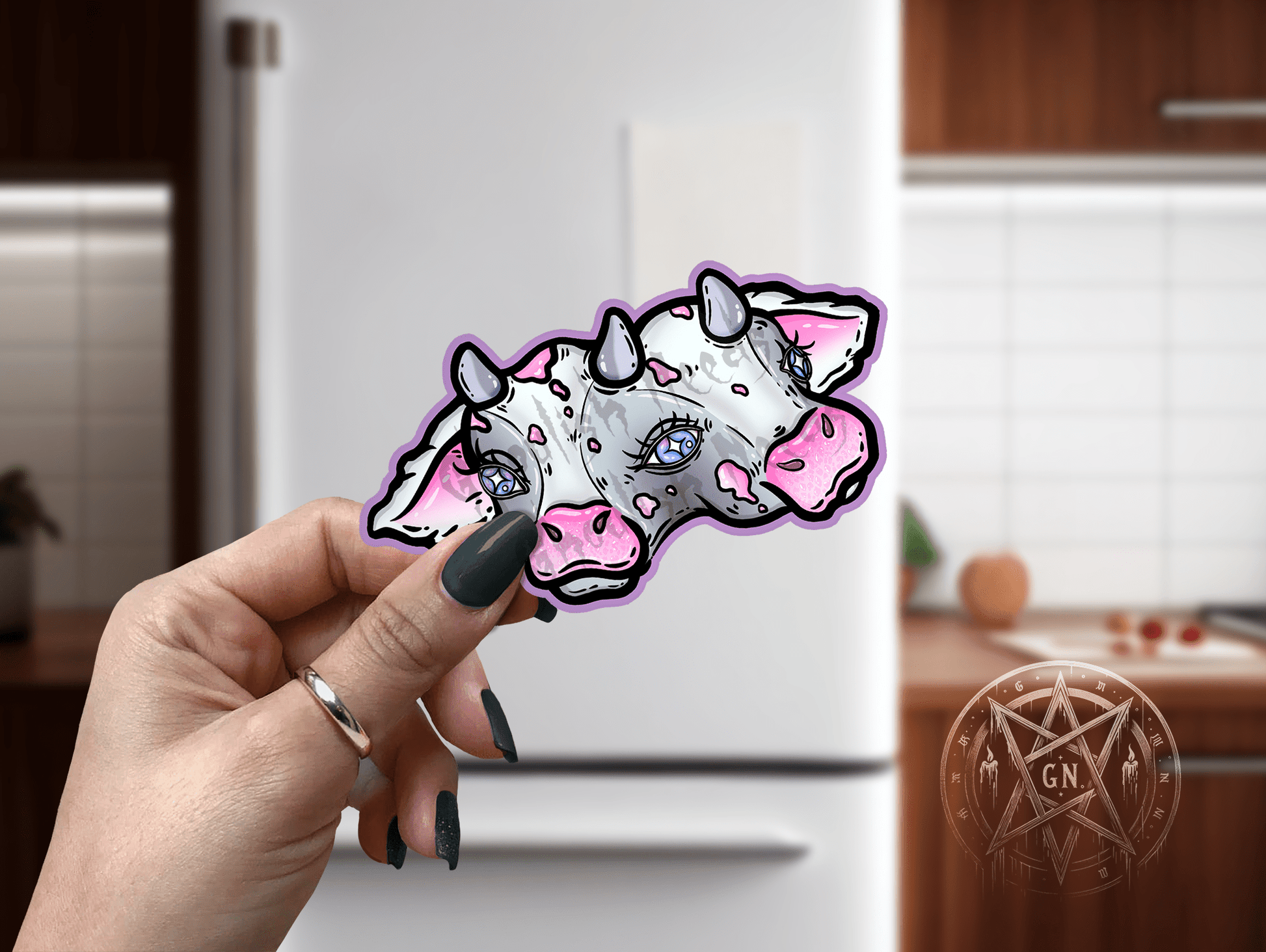 Add a touch of quirky charm to your space with this adorable two-headed cow magnet! Featuring soft pastel colors with a vibrant purple border, this magnet is the perfect blend of cute and unique. Whether you stick it on your fridge, locker, or any magnetic surface, it's sure to stand out. A must-have for lovers of all things whimsical and unusual!